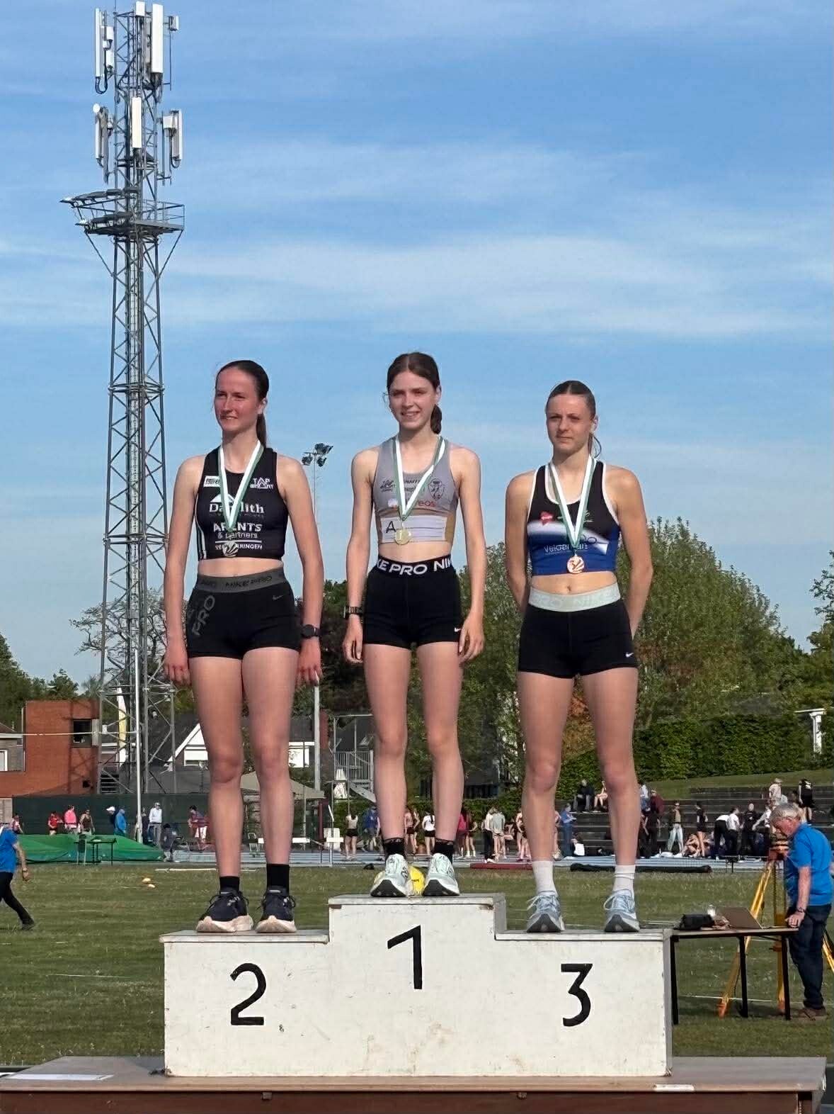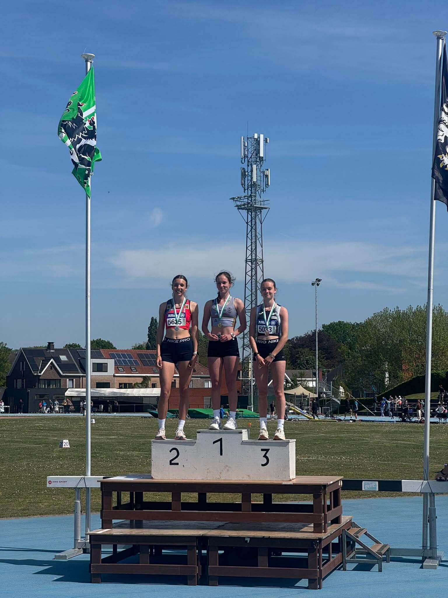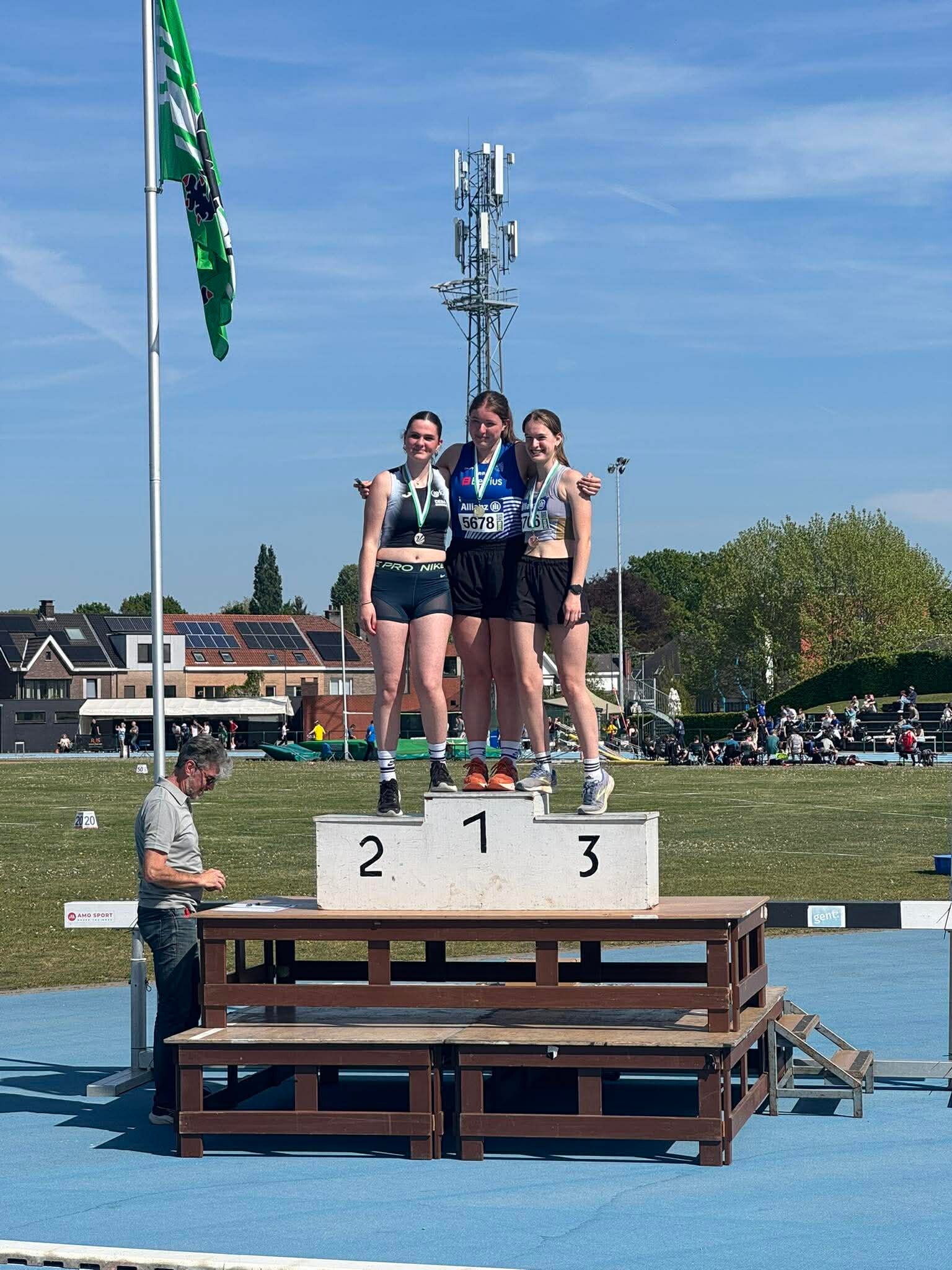 Bij de junioren vrouwen zorgde Solii Wirsiy Nsolo voor een absolute uitschieter met zilver op de 100m horden in 15,27 (clubrecord en PB, verbetering van het record van Katinka Pottie). Op de 100m werd ze opnieuw tweede in PB 12,58, terwijl ze op de 400m horden werd gediskwalificeerd. Nora Vereecken kende een bijzonder sterk weekend met zilver in het speerwerpen (PB 35,63 m), winst in het verspringen (5,07 m), winst in het hoogspringen (1,66 m) en brons op de 200m (26,28, met teveel meewind). Fien De Meeter kroonde zich tot provinciaal kampioene op de 3000m in 10:26,98 (PB en clubrecord). Guinevere De Cort werd zesde in het discuswerpen (23,96 m).